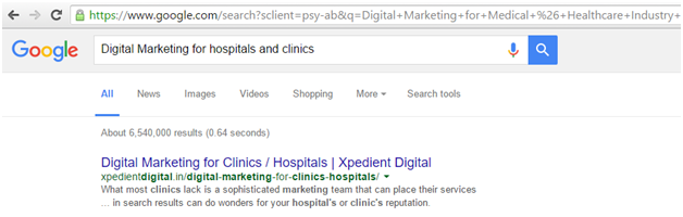 Our expertise to promote a Hospital or a clinic on different search engines includes keywords selection and analysis, continuous upgrade and analysis of best content for your website and develop a brand over a period of time to create perception in the mind of your customers.